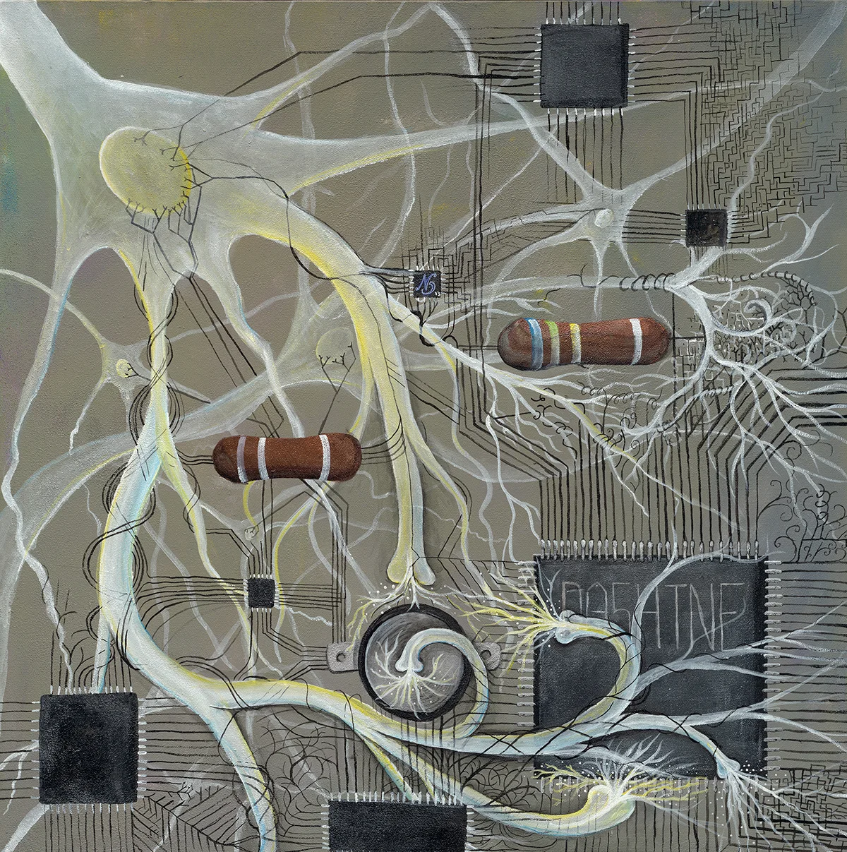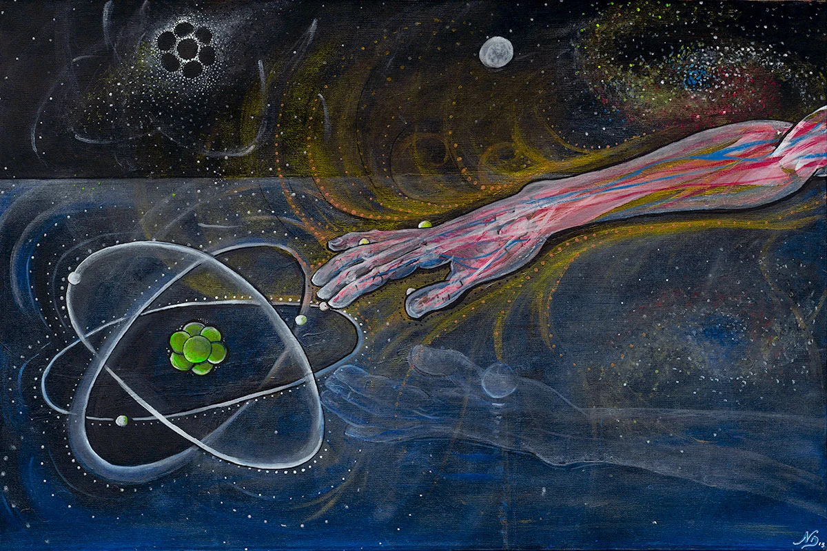 The Creation of Atom explores the idea of creation in a metaphysical collaboration of the right and left hemisphere.