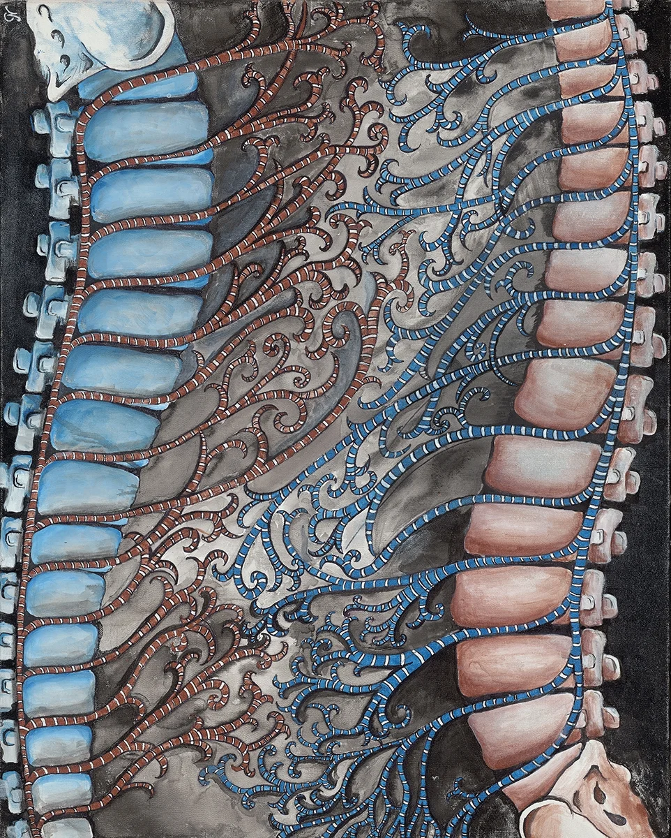 This life-sized painting explores the movement of energy in the body during flow state