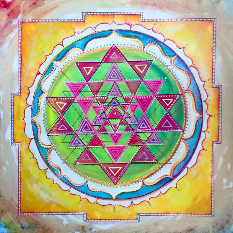 2ftx2ft, A Yantra is a sacred diagram used in Eastern mysticism to balance the mind or focus it on spiritual concepts. The act of wearing, depicting, enacting and/or concentrating on a yantra is held to have spiritual or astrological or magical benefits in the Tantric traditions of the Indian religions.